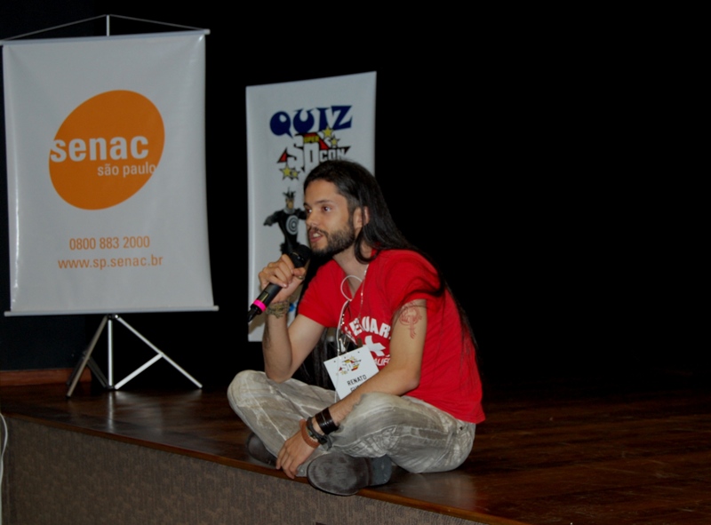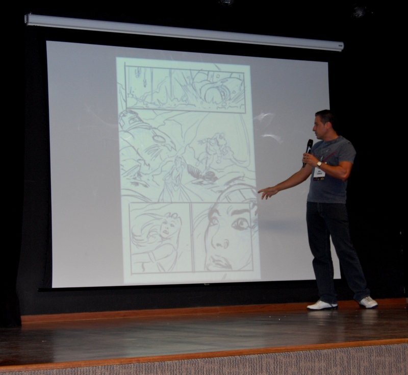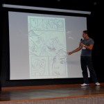 A palestra  foi um bate papo gostoso entre amigos, o artista falou sobre a  necessidade de disciplina para o trabalho e a necessidade de estudar bastante para quem quer trabalhar na area (ta pensando o que ???? Desenho é coisa seria pow).