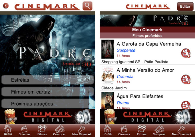 App da rede de cinemas Cinemark com filmes em cartaz, horários, trailers e compra de ingressos.