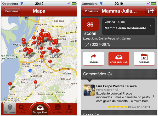 Perfeito para os gordinhos como eu! Localização dos restaurantes mais próximos, busca por cozinha, preços e fotos dos estabelecimentos e muito mais.