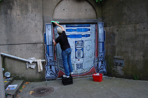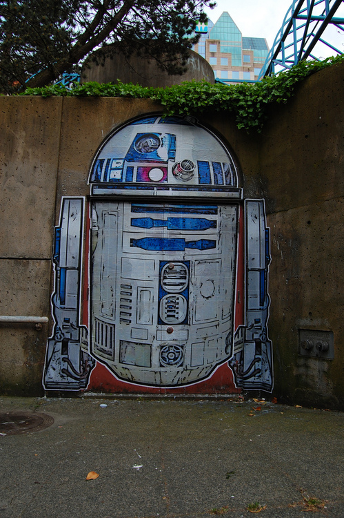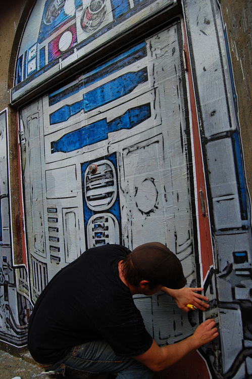 Que tal transformar uma porta gigante e sem graça em um R2-D2 enorme?