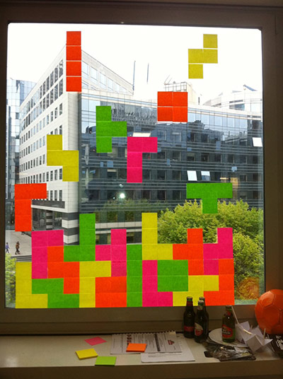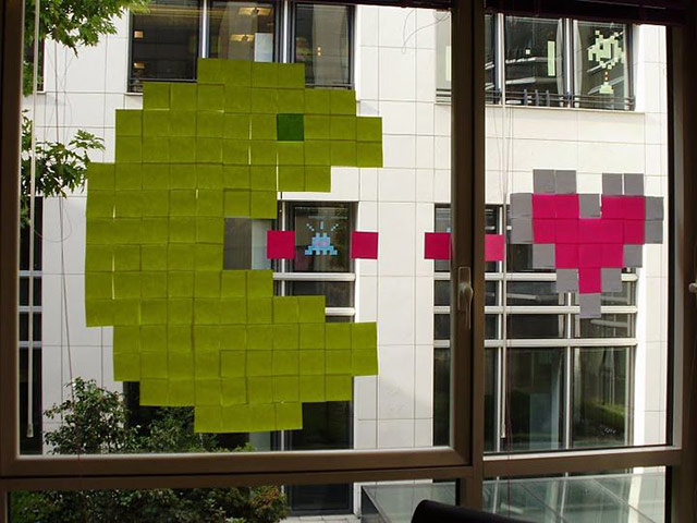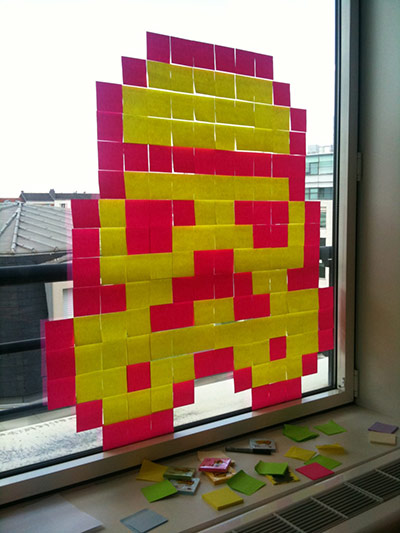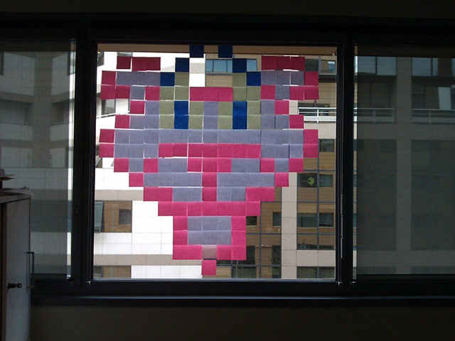 No verão de 2011 os trabalhadores de escritórios na França fizeram uma batalha de criação de imagens de personagens feitos em Post-it.