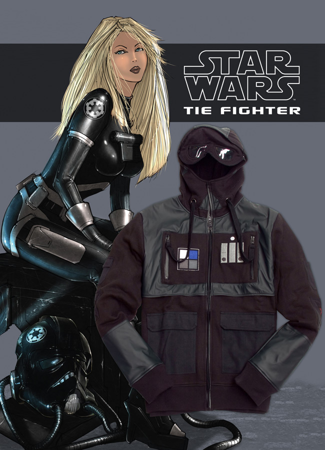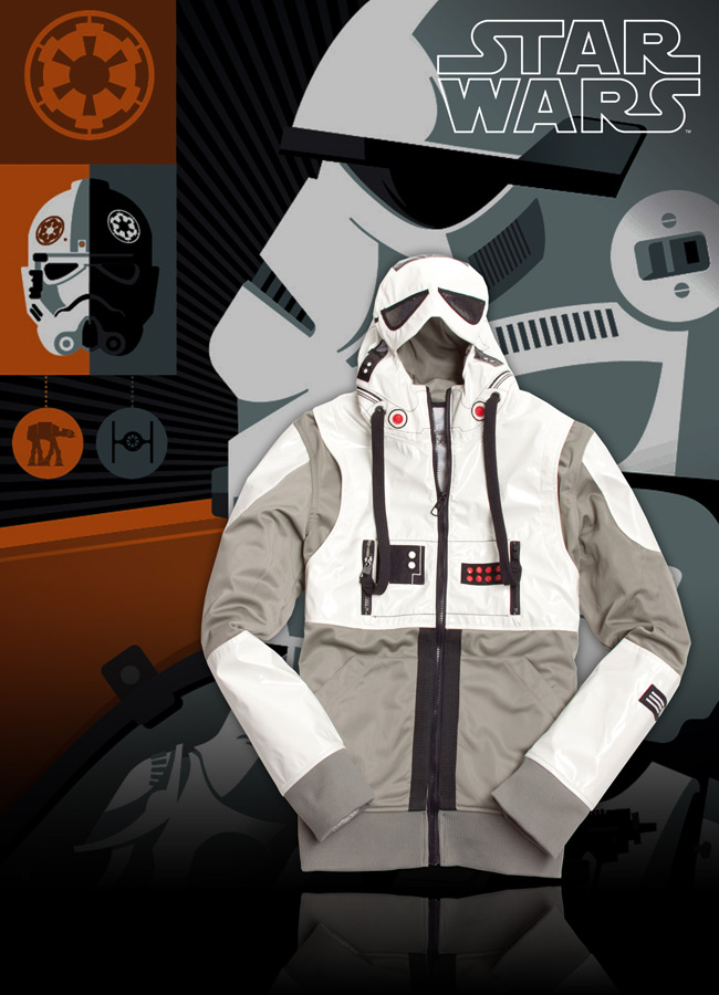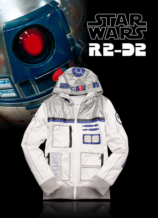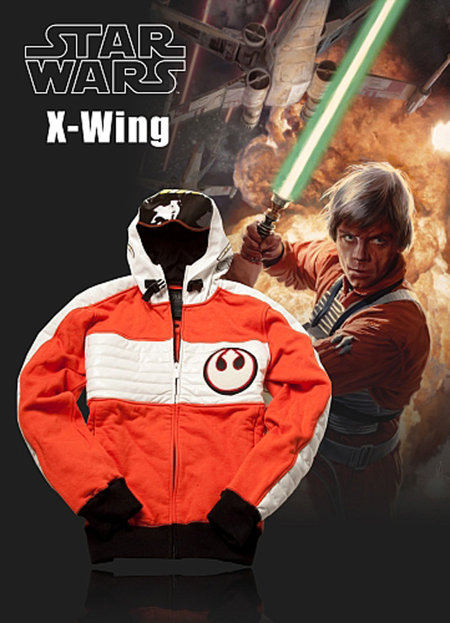 A linha dispõe de jaquetas inspiradas em uniformes de times, pelo de Chewie, o uniforme laranja do Luke como piloto da Aliança Rebelde. E camisetas com estampas como a clássica cena da luta entre Vader e Luke.