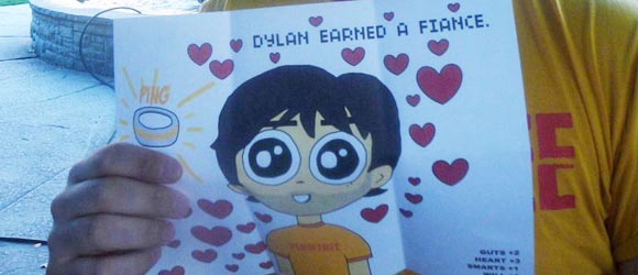 Dylan o noivo recebeu alguns envelopes que cotiam no verso endereços de lugares em Toronto que são citados no HQ. E dentro dos envelopes estavam paginas de Scott Pilgrim citando os lugares. Ao abrir o ultimo envelope ele ganhou o Achievement de ter uma noiva.