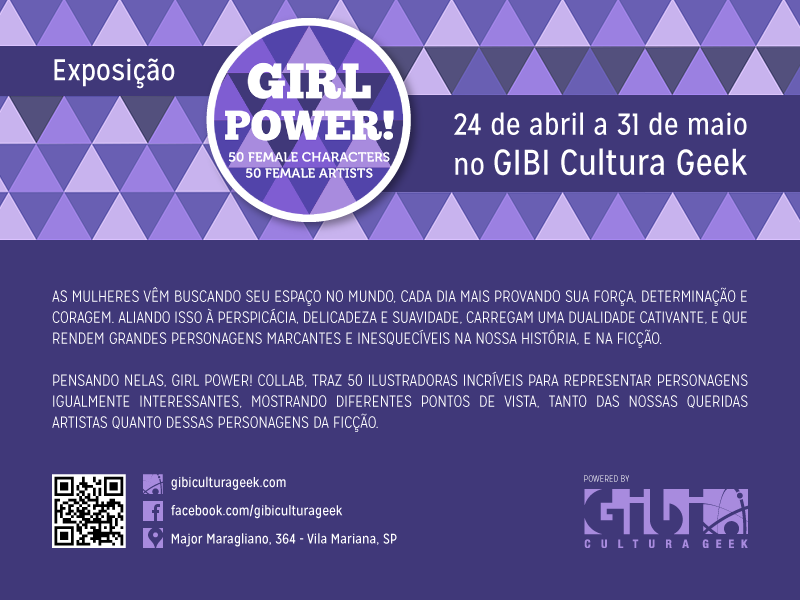 O GIBI Cultura Geek recebe do dia 24 de Abril até o dia 31 de Maio a exposição Girl Power! Collab, que reúne 50 ilustradoras brasileiras que interpretam 50 personagens femininas da cultura pop.