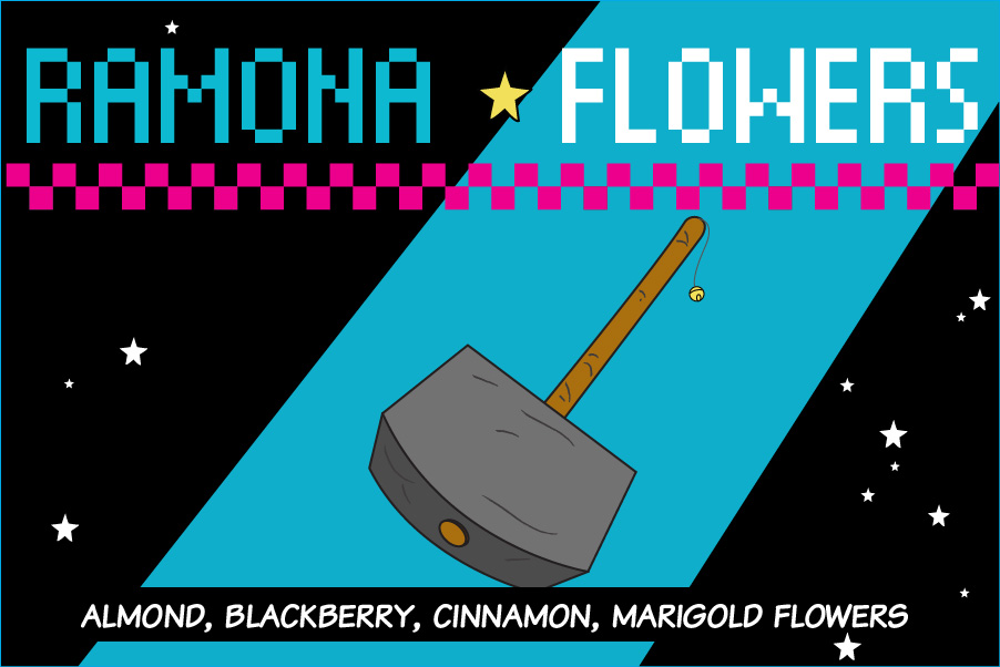Personagens de Scott Pilgrim como essências de chá