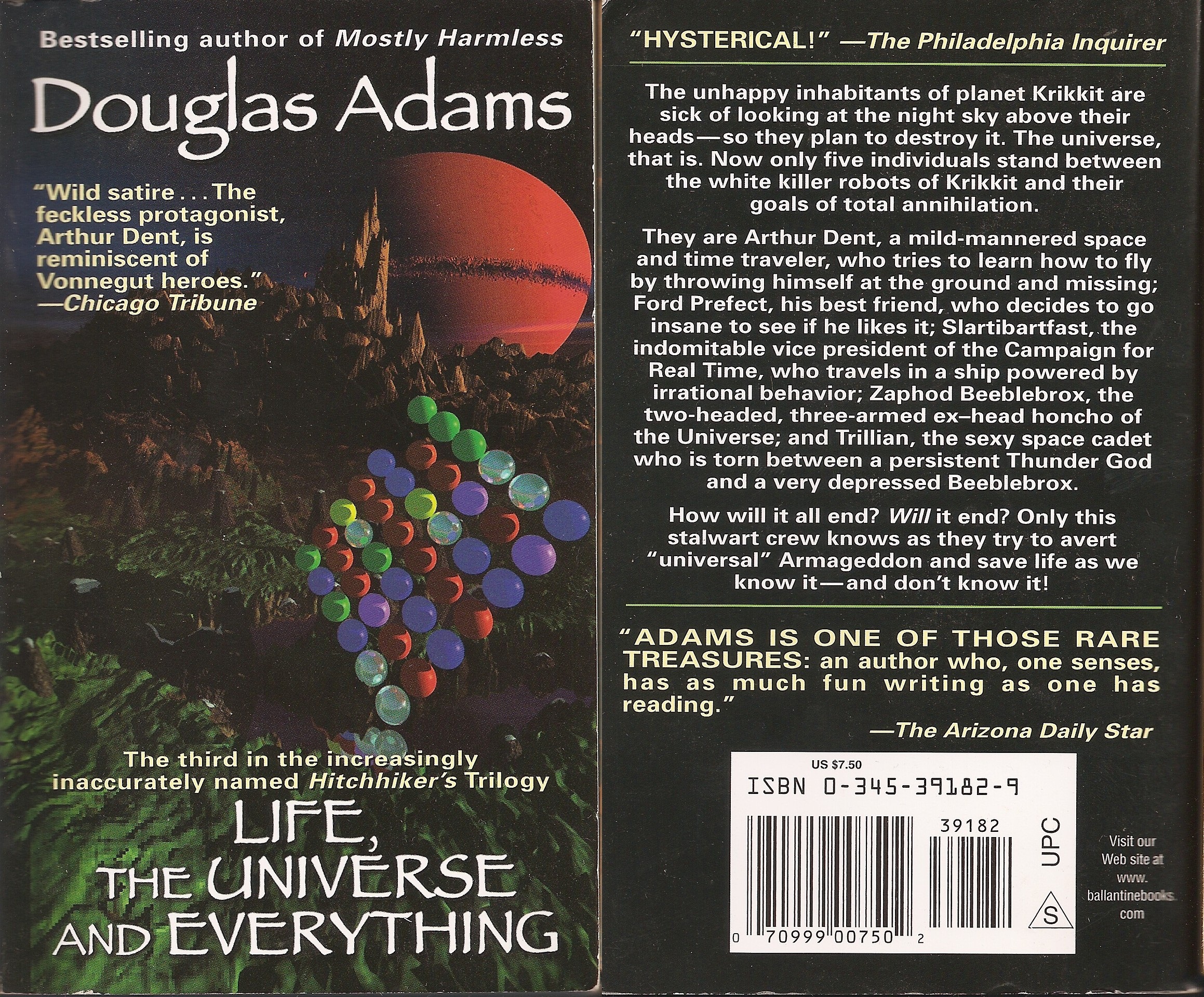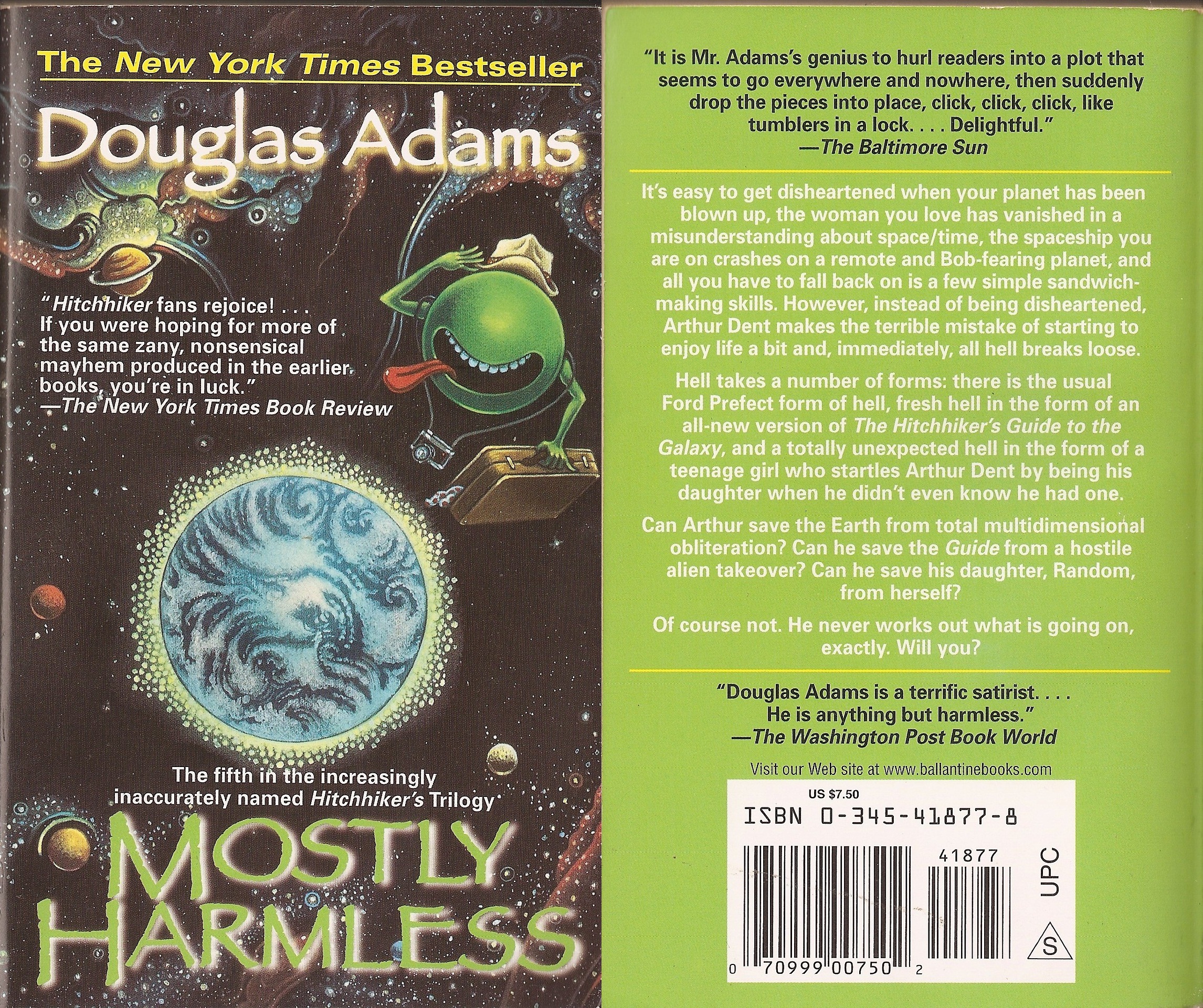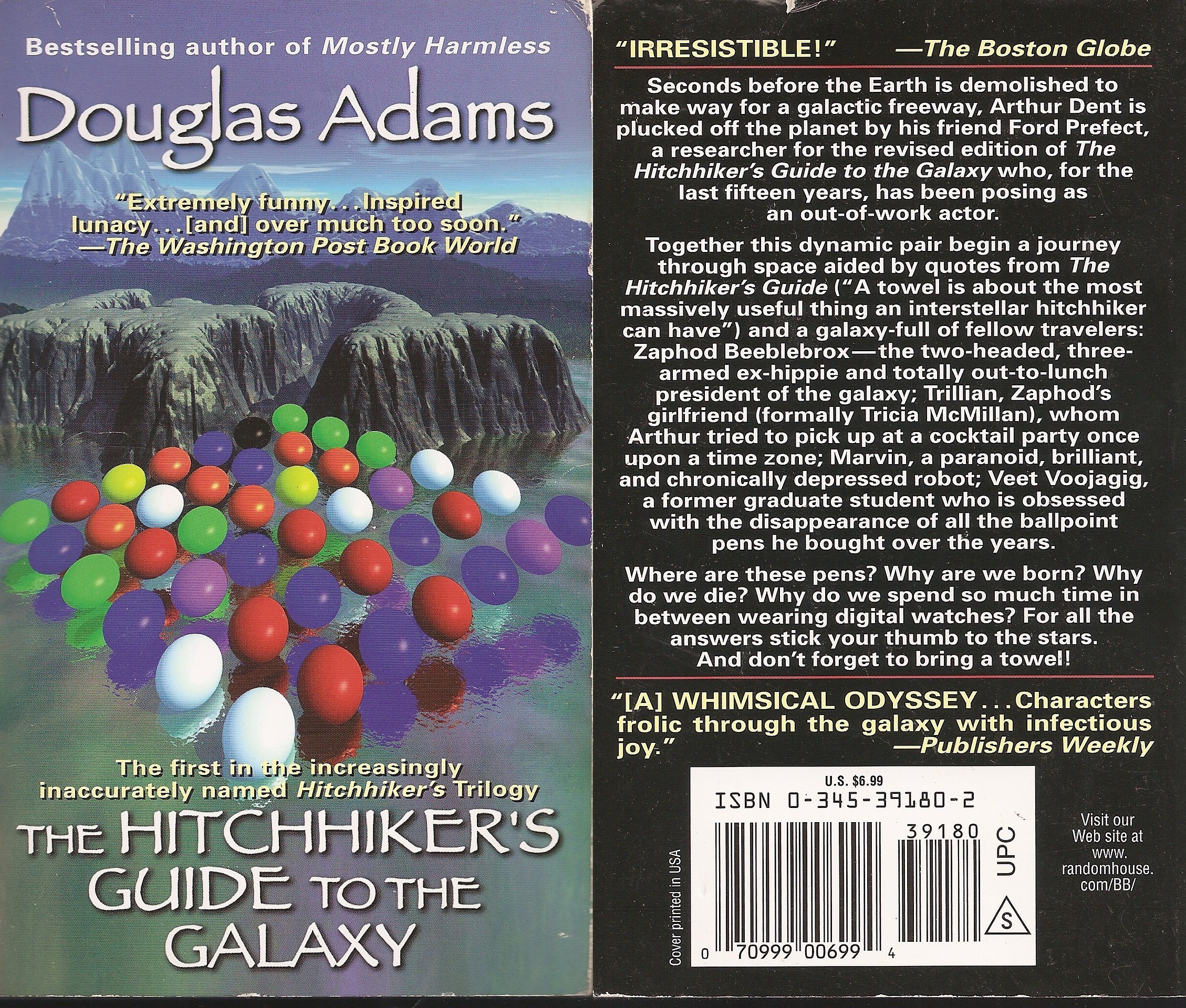 Ele aparece nos 3 primeiros livros: O Guia do Mochileiro das Galáxias, O Restaurante no Fim do Universo e A Vida o Universo e Tudo Mais. Em Até Mais e Obrigado Pelos Peixes e Praticamente Inofensiva as ilustrações remetem aos títulos.Essas são as ilustrações que estavam na capa da trilogia em meados dos anos 90.