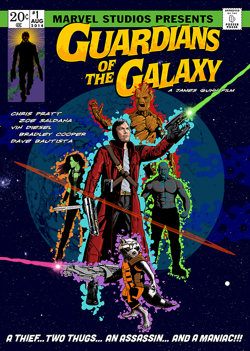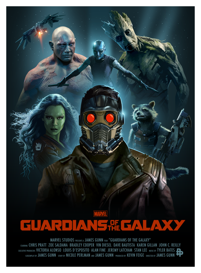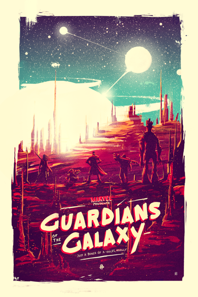 O novo filme da Marvel Guardiões da Galáxia está com estréia prevista para final de Julho. E alguns artistas fizeram ilustrações de pôsteres e capas de HQ’s alternativos do filme. Crédito do artista na imagem.