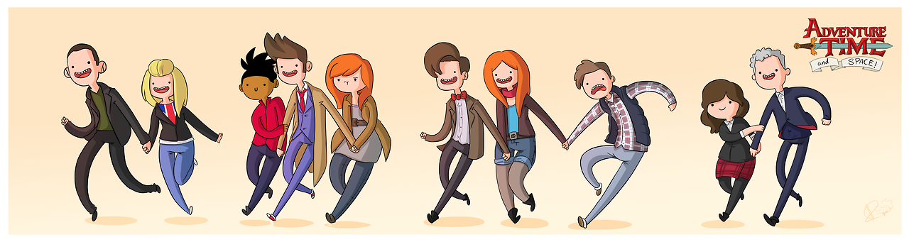 O cartunista Alex Dempsey fez essas lindas ilustrações dos Doctors e seus Companions como se fossem personagens de Adventure Time.