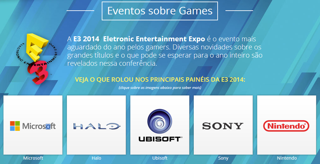 Também tem a cobertura dos principais eventos sobre games, com o que rolou e as novidades que as empresas estão trazendo ao mercado.