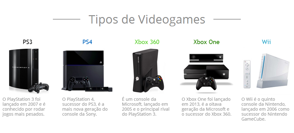Na página, é possível encontrar detalhes sobre os consoles que fazem mais sucesso e suas especificações. Veja só: