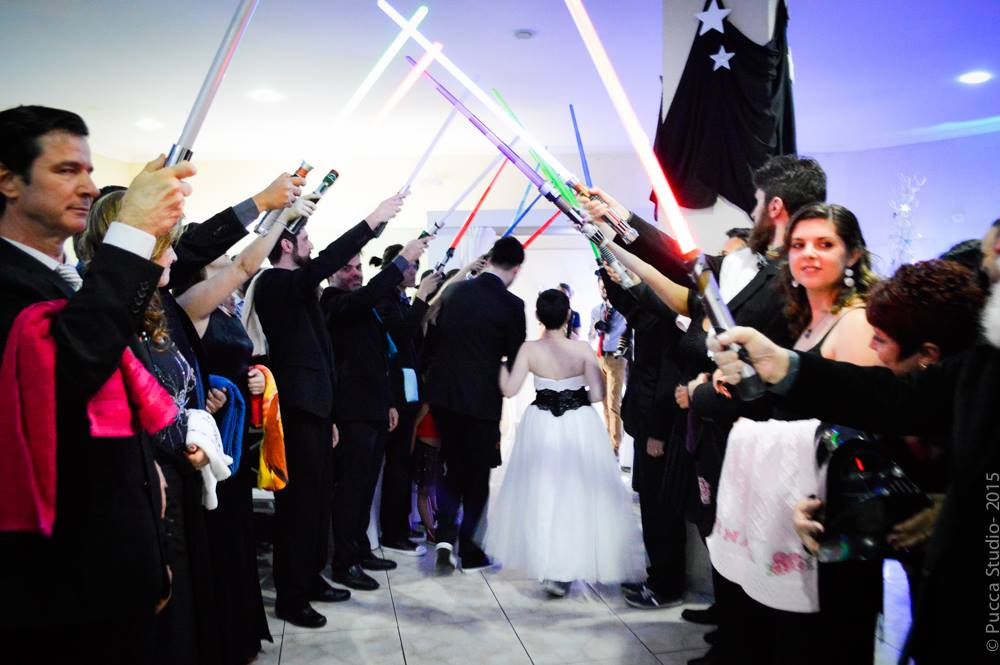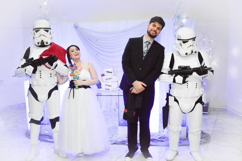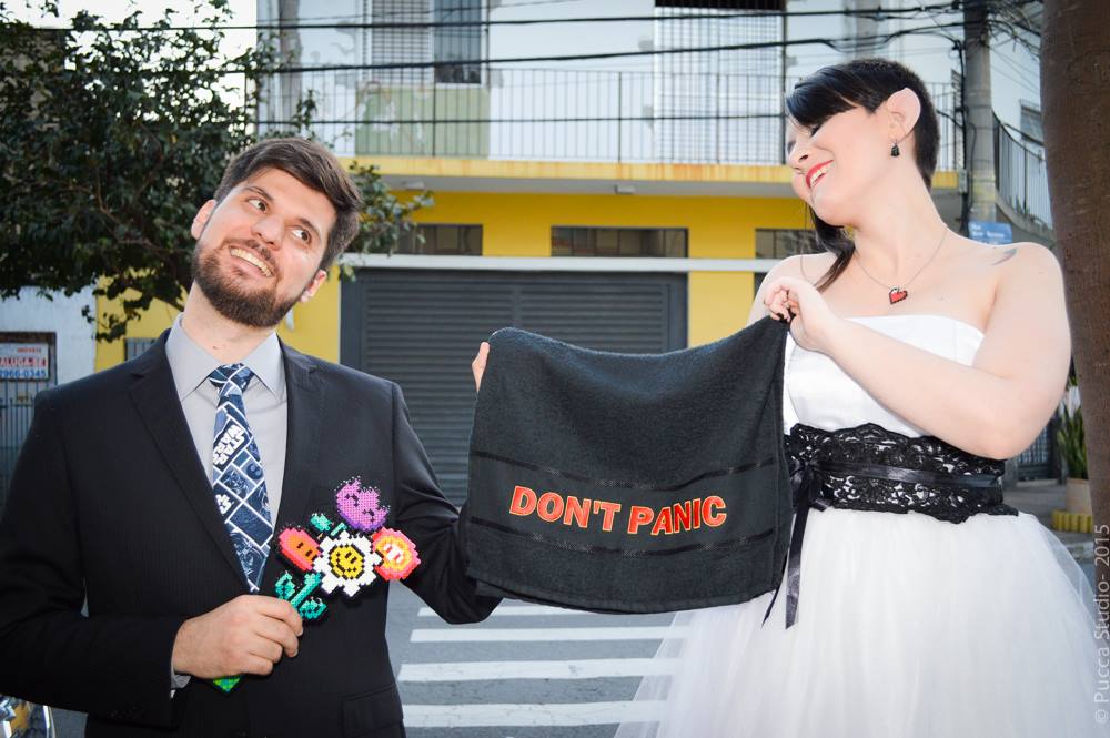 Star Wars, Star Trek, Super Mario Bros, Doctor Who e claro, o Guia. Imagine todas essas referências no dia do seu casamento? Foi isso que aconteceu no grande dia de uma das nossas leitoras!