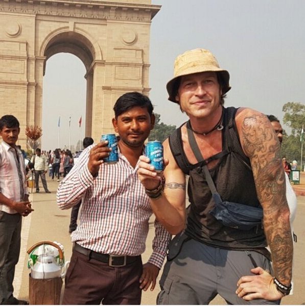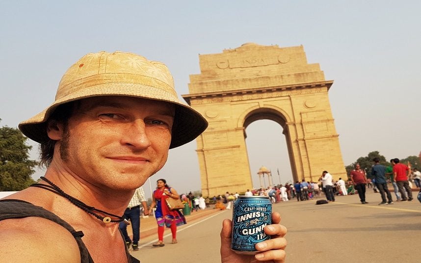 Manny Marshall, da Raw Safari – um blog onde ele conta sobre suas viagens e informações para gastar pouco – , chegou à capital indiana, Nova Deli, depois de partir de Edimburgo carregado de latas de cerveja IPA da Innis & Gunn como sua moeda, compartilhando-os com estranhos ao longo do caminho.