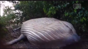 Uma baleia da espécie Jubarte foi encontrada nesta sexta-feira (22), em área de mata da praia do Araruna, litoral do município de Soure, na ilha do Marajó.