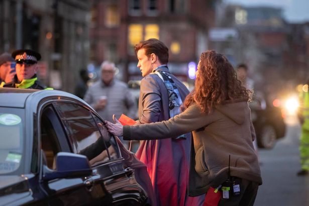 Matt Smith é visto em Manchester nas filmagens do novo blockbuster Morbius.
