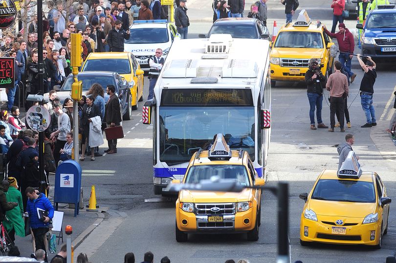 As equipes de filmagem estão em Manchester, lotando as ruas com adereços, incluindo táxis e semáforos amarelos, um ônibus azul e branco da cidade de Nova York, quiosques e caixas postais azuis dos EUA.