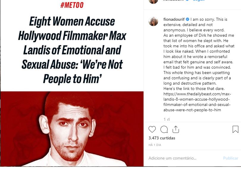 Várias outras mulheres apareceram logo depois com alegações de má conduta sexual, incluindo a artista Zoe Quinn, que postou: “Às vezes os homens que cometem agressão sexual são roteiristas talentosos e seu trabalho vem com bagagem. Outras vezes, eles são Max Landis.”