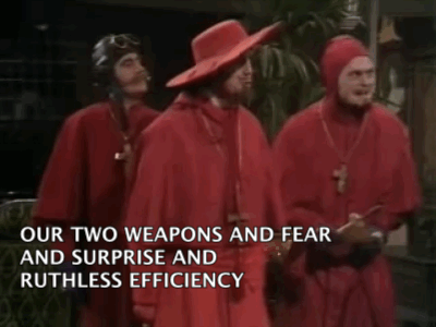 Obrigada pelos spams, papagaio, Inquisição, nudge, animações incríveis, senhoras de vozes esganiçadas, futebol, cricket, nos explicar o sentido da vida e músicas contagiantes.
