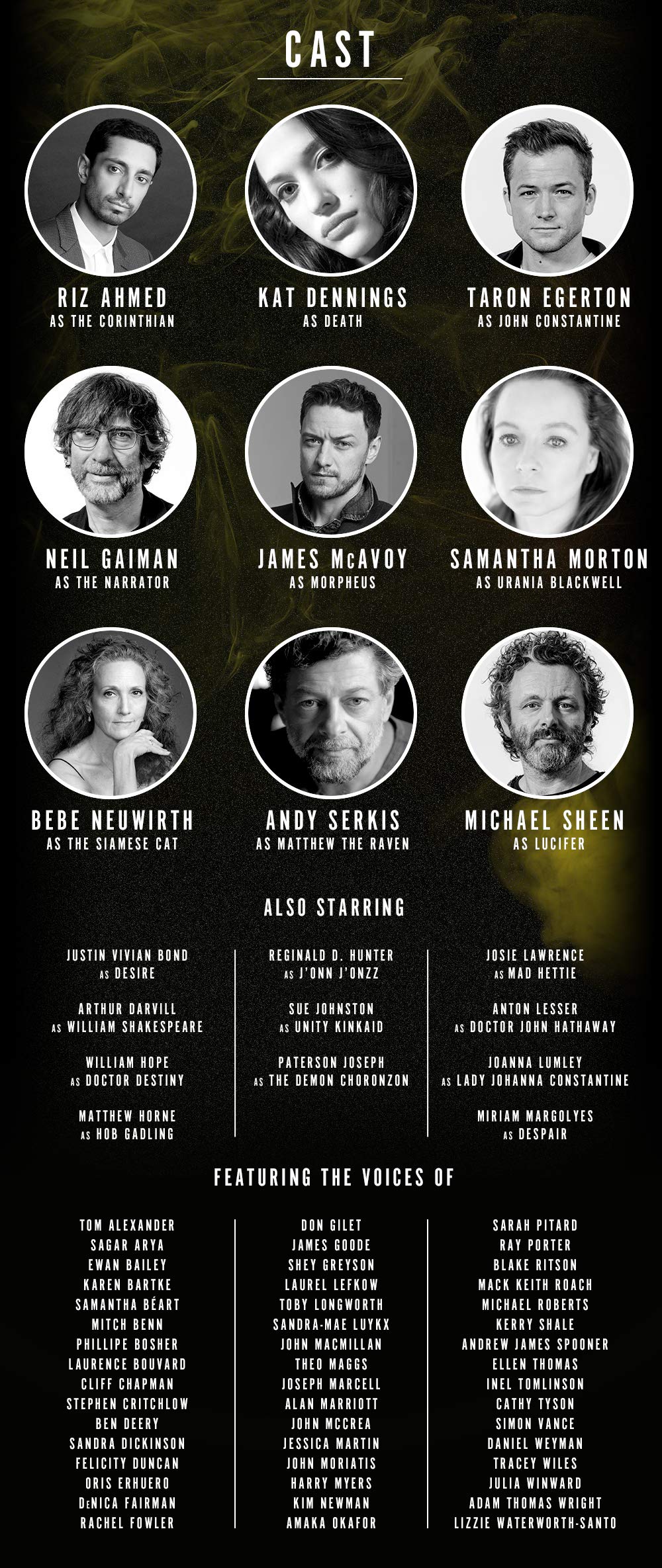 A aclamada história em quadrinhos de Neil Gaiman será trazida à vida por Riz Ahmed, Kat Dennings, Taron Egerton, Andy Serkis Michael Sheen e muito mais.