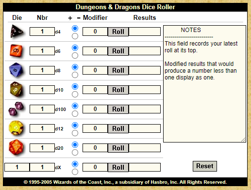 Para rolagens, eu recomendo o Dungeons and Dragons Dice Roller, da Wizards of The Coast: https://www.wizards.com/dnd/dice/dice.htm