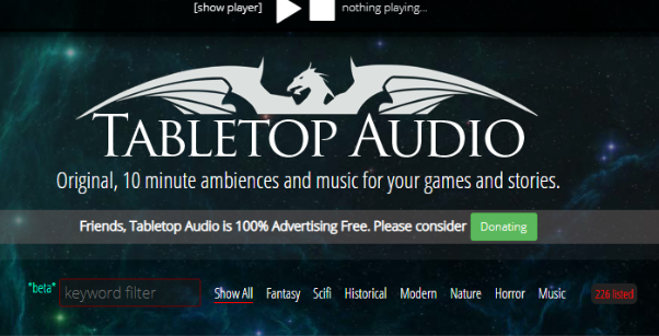 Agora, para a Ambientalização, eu recomendo o Tabletop Audio, cujo link é este aqui: https://tabletopaudio.com/