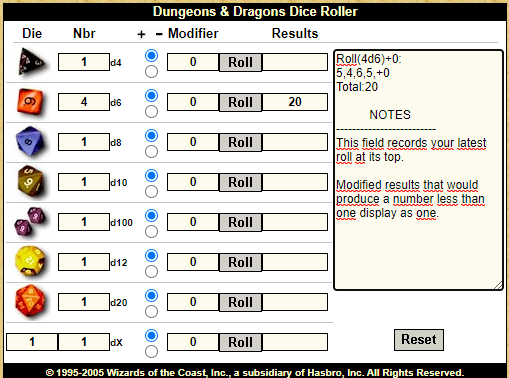 Neste caso, o menor valor foi 4: 20-4= 16. Nas próximas rolagens, obtive o seguinte: