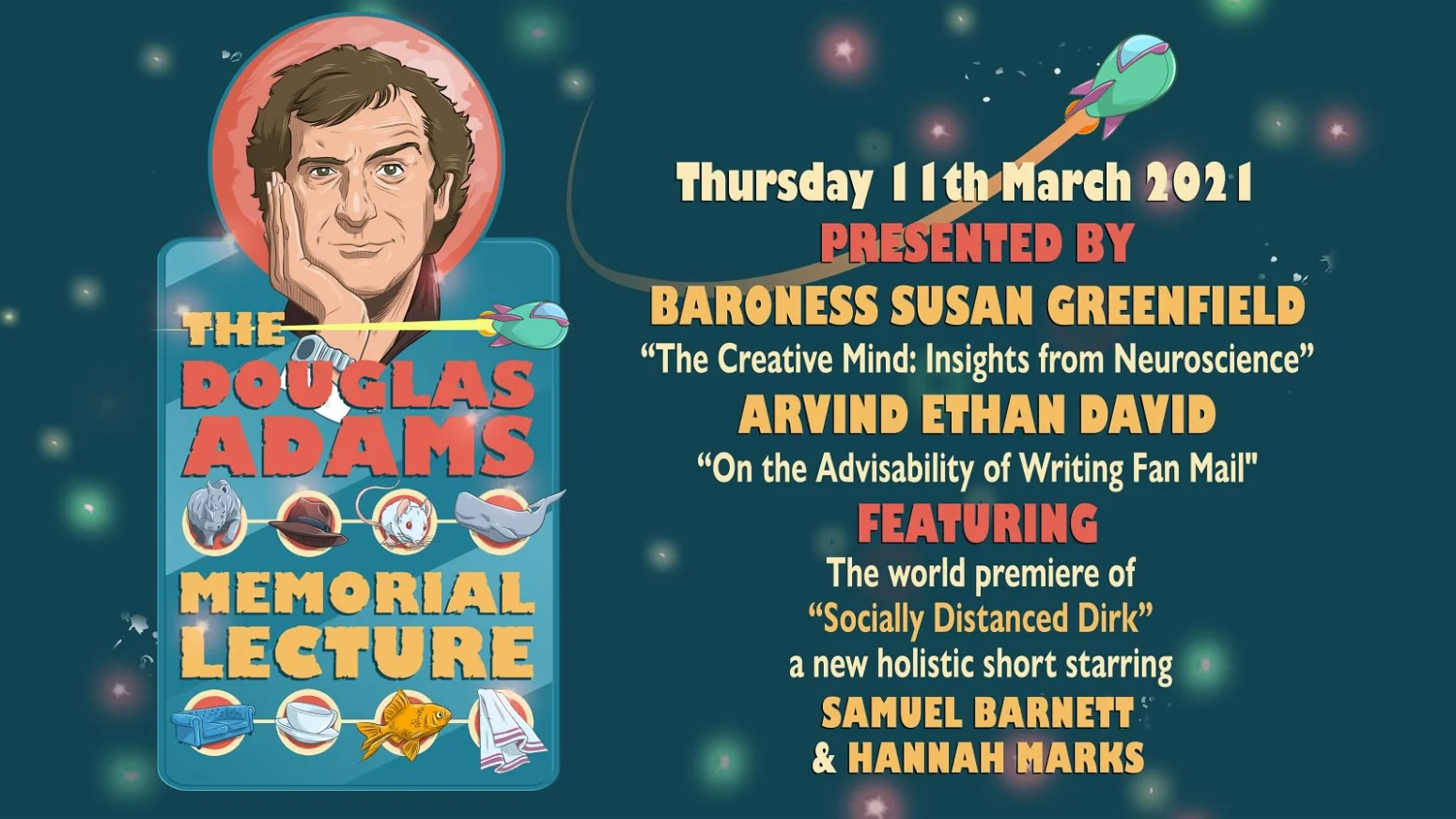 Realizado digitalmente, o evento contará com uma palestra da neurologista e amiga de longa data de Douglas, a Baronesa Greenfield CBE. Arvind Ethan David, que é responsável por dar vida ao personagem de Adams, Dirk Gently, no palco e na tela, também compartilhará memórias sobre como trabalhar com ele e como seu legado de conservação dos rinocerontes continua até hoje.
