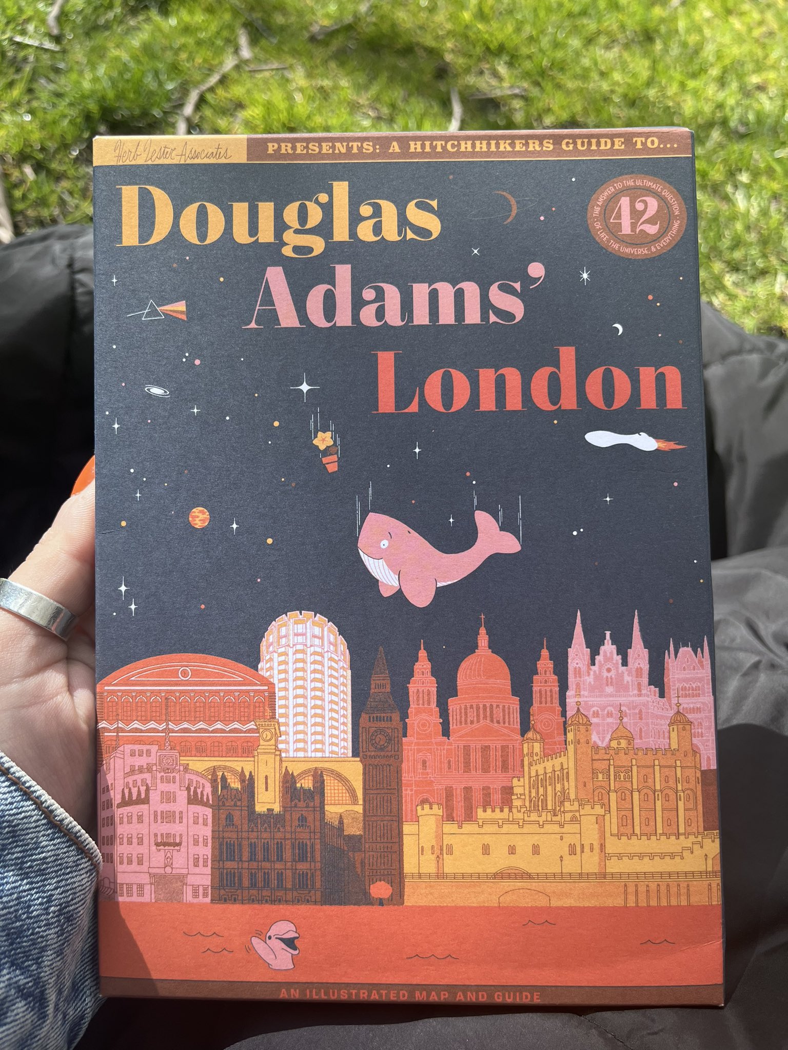 Minha viagem de 42-42-42 foi uma espécie de presente para mim mesma: eu viajaria para 42 lugares dos romances de Douglas Adams, durante 42 dias, no meu 42º aniversário. Por 42 dias eu viajaria para Londres, para a Cornualha, para Manchester, para Cambridge, para Dorset, para a Áustria, e depois de volta para casa em Santa Bárbara, o que contou porque é um cenário do quarto livro de Douglas Adams e ele viveu aqui até sua morte em 2001. No meu aniversário, eu faria uma peregrinação de 42 lugares.